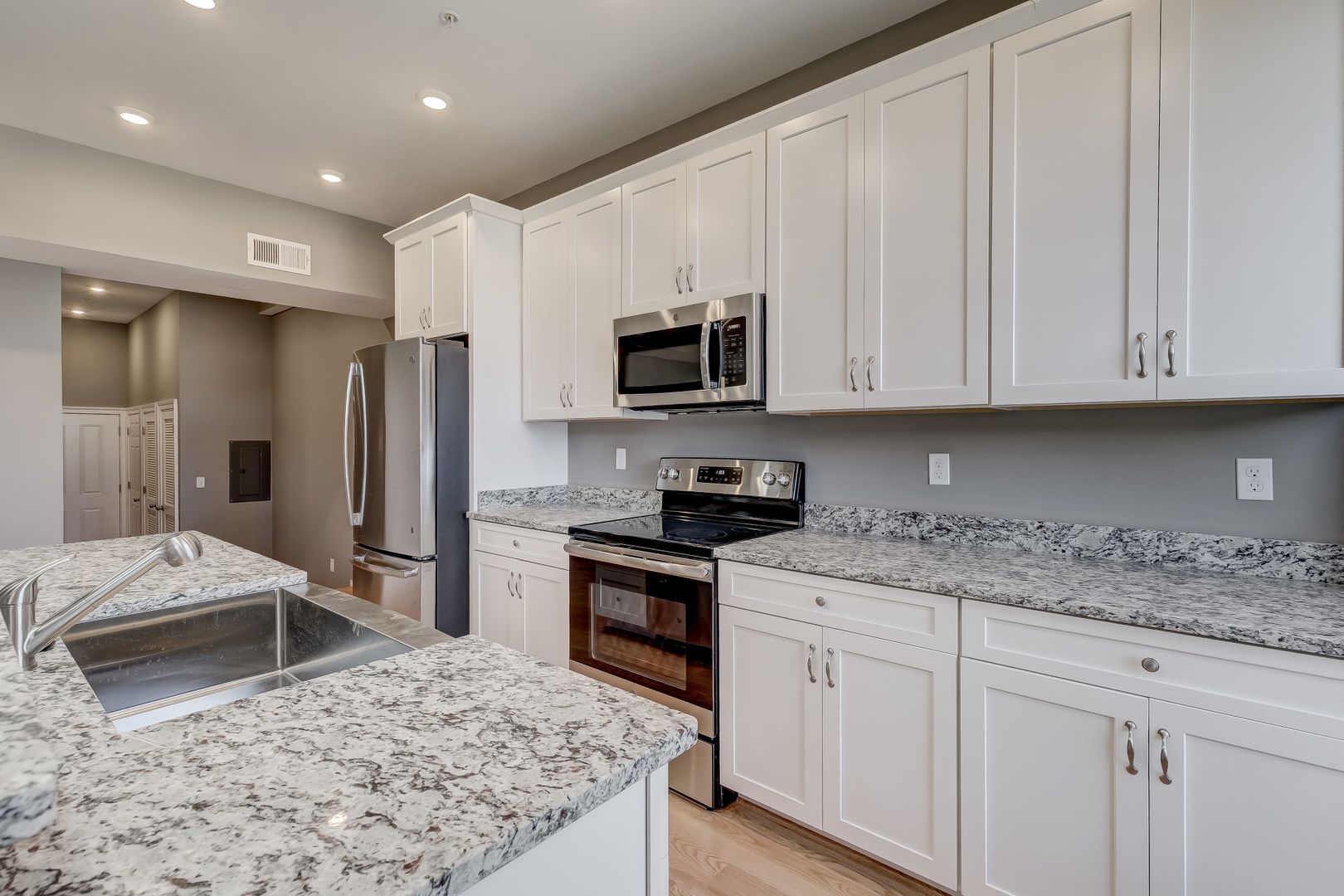 - stainless steel appliances with granite tops