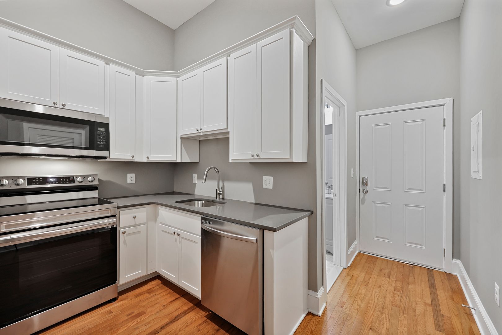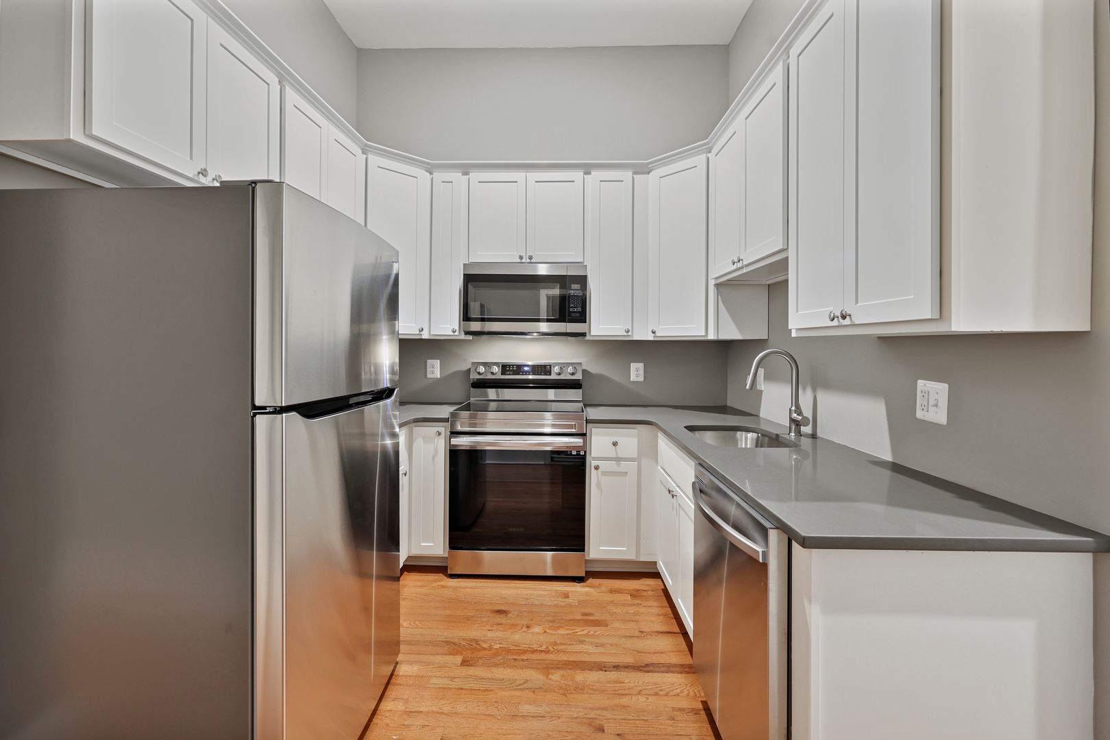 - Stainless steel, eat-in kitchens w/ quartz countertops